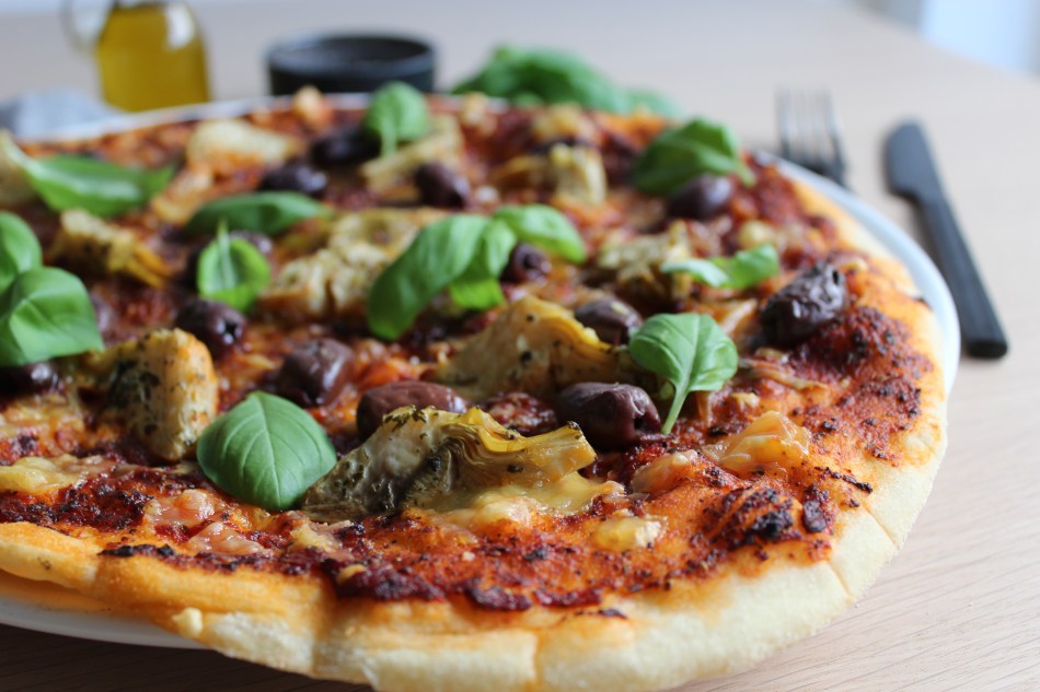 (evt. krydderurter (fx basilikum eller persille), oliven og/eller gærflager)