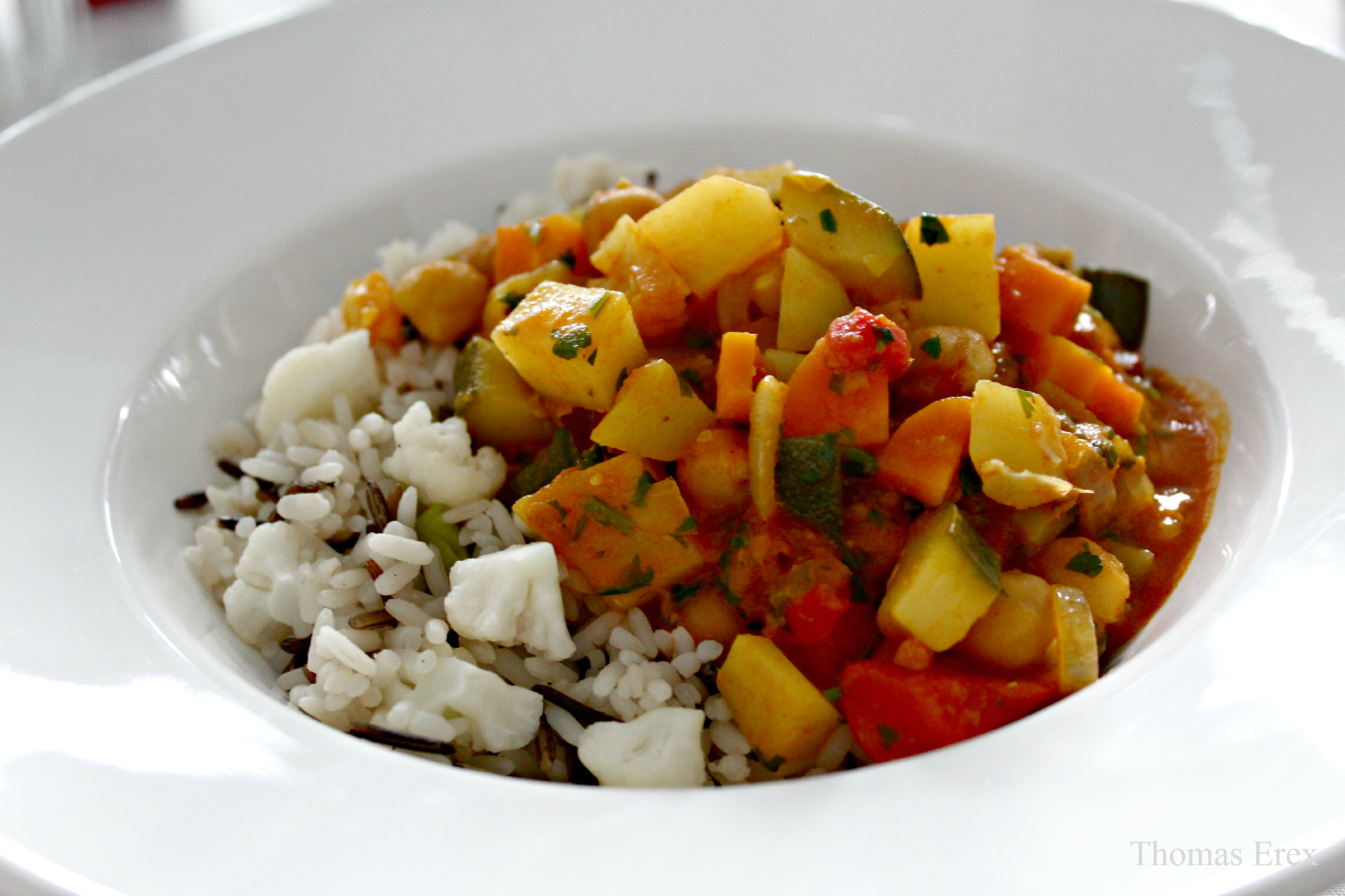 Steg kikærterne på en godt varm pande i olivenolie sammen med løg og hvidløg. Når løgene er klare tilsætter du krydderierne, vender det i et minut eller to og tilsætter så de øvrige ingredienser undtagen basilikum. Skru lidt ned for varmen og lad det stege i nogle minutter. Tilsæt basilikum og smag til med salt og peber.