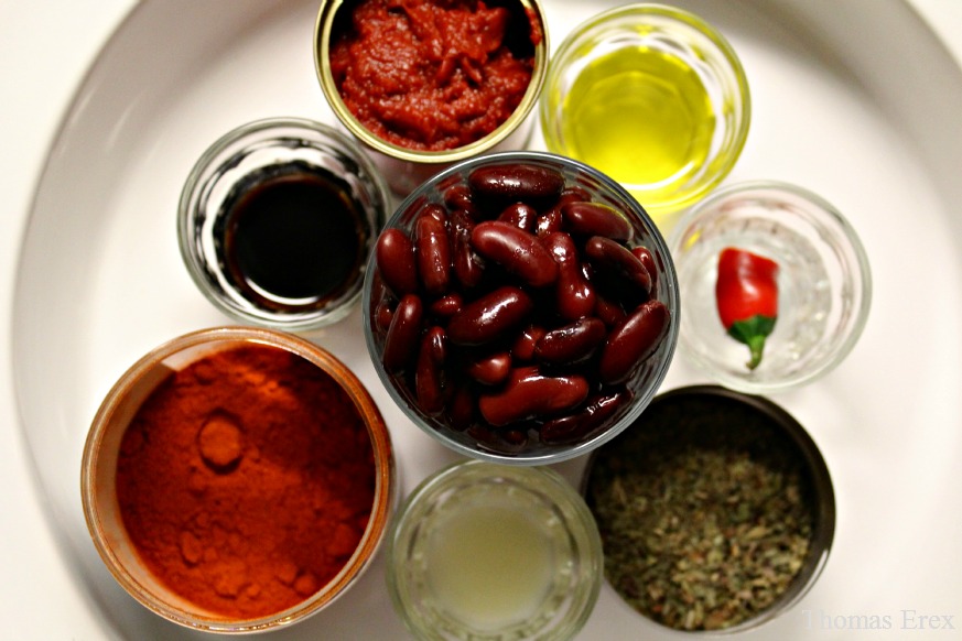 Der skal bønner på brødet. Og det kommer der så. Røde bønner med tomat og KABOOM fra chili og citronsaft. Det sprutter på tungen af citronens syre og chiliens styrke, mens konsistensen føles rund og blød i munden og sødmen fra tomatpuréen kæler for dine smagsløg sammen med krydderierne. Eller… ja, okay, det er altså bare bønnesmørepålæg. Men det er godt 😉