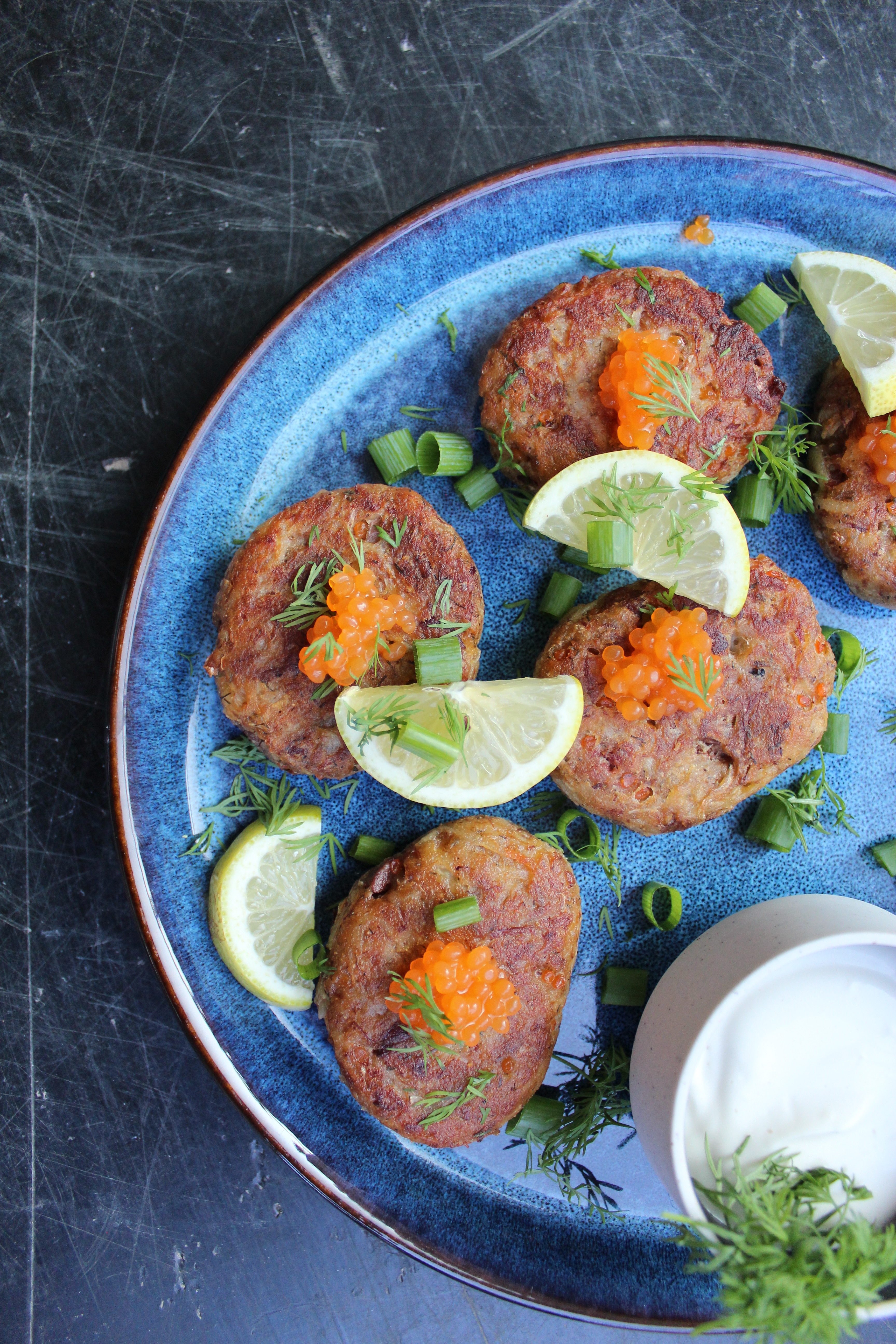 Crab cakes, eller krabbefrikadeller, er sprøde deller fra USA med fisket fyld. Her har jeg lavet en plantebaseret udgave – vegansk og glutenfri. Jeg har tilføjet havsmag ved at bruge Cavi-art. Caviart er et tang-baseret alternativ til caviar. Du kan nemlig sagtens lave dine livretter i mere miljø- og dyrevenlige udgaver uden at gå på kompromis med smagen. De her deller er så lækre. Prøv dem, prøv dem, prøv dem!