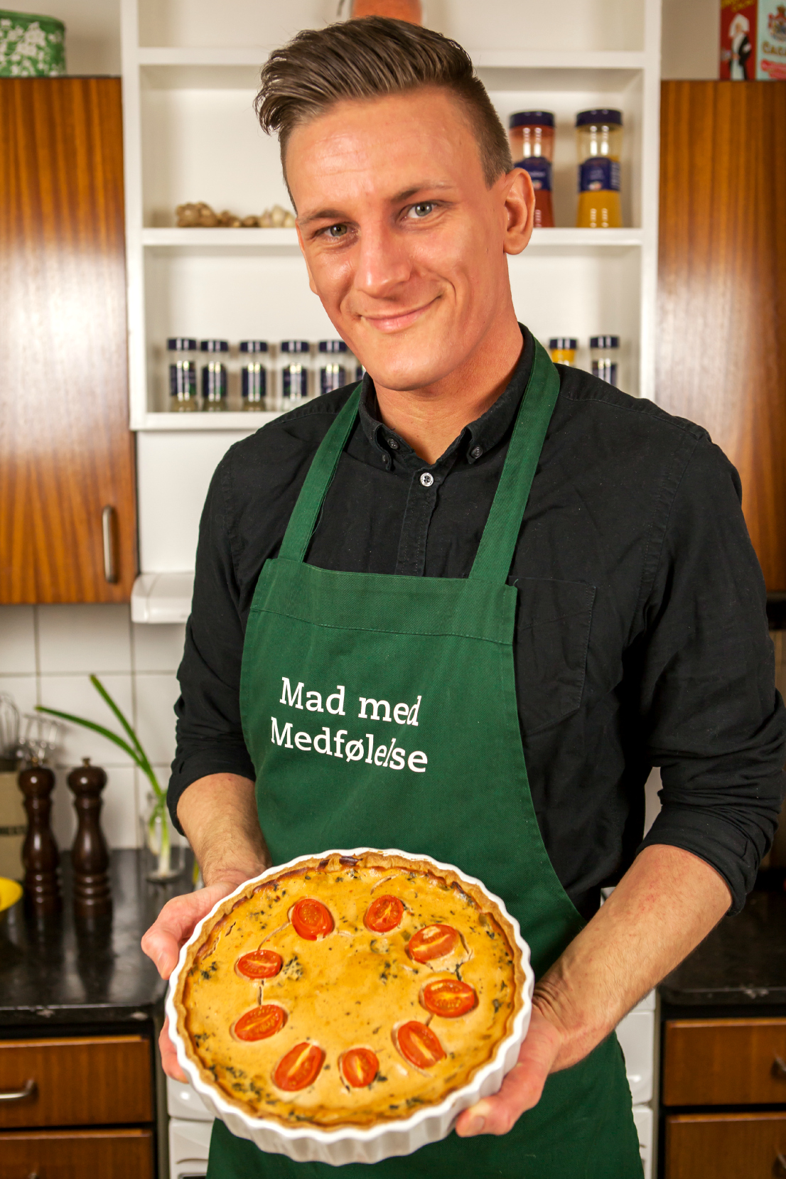 Bland alle ingredienser godt og ælt til en fast dej. Form til en kugle og pak den ind i folie. Stil i køleren en halv times tid mens du laver spinatfyldet. Rul derefter dejen ud på et bord med en smule mel på, så den passer til din form. (Dejen klistrer ikke så meget, så spar bare på melet. Til gengæld skal du passe på, at den ikke går i stykker, når du lægger den over i tærteformen.) Kom i form, prik huller over det hele med en gaffel, læg bagepapir over og fyld tørrede kikærter i. Forbag ved 180 grader i 15 minutter. Kikærterne kan sagtens bruges bagefter, så smid dem ikke ud!