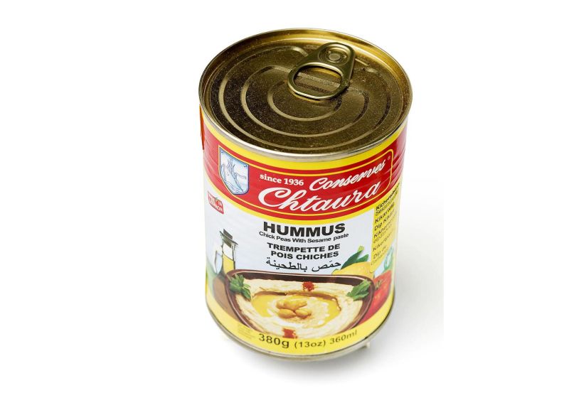 Hummus kan købes færdiglavet på dåse i alt fra Netto og Rema 1000 til Føtex og Kvickly. Der er ikke imponerende gode overhovedet, men det er let. Hvis du har en stavblender, kan du evt. købe to dåser kikærter i stedet og lave din egen hummus.