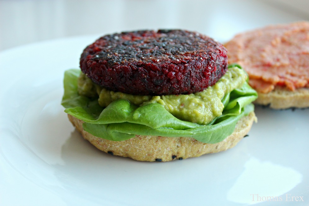 Banke, banke, banke, banke… BØF! Burger på vegansk lyder måske trist, men det er langtfra tilfældet. Der er langt flere muligheder for at variere bøffen og smagsbilledet. Hvis du vil have store bøffer af at spise burgere, så er det her vejen frem. Lad den gyldne måge flyve på lossepladsen, hvor den hører til, og giv dig i stedet i kast med at skabe en mere spændende og sund burger, der smagsmæssigt er helt i top. De her blodrøde bedebøffer er perfekte til en lækker burger med guacamole, men du kan også bruge dem til en lækker efterårsmenu med stegte/bagte kartofler og andre rodfrugter, linse- eller speltsalat og måske en pebersauce.