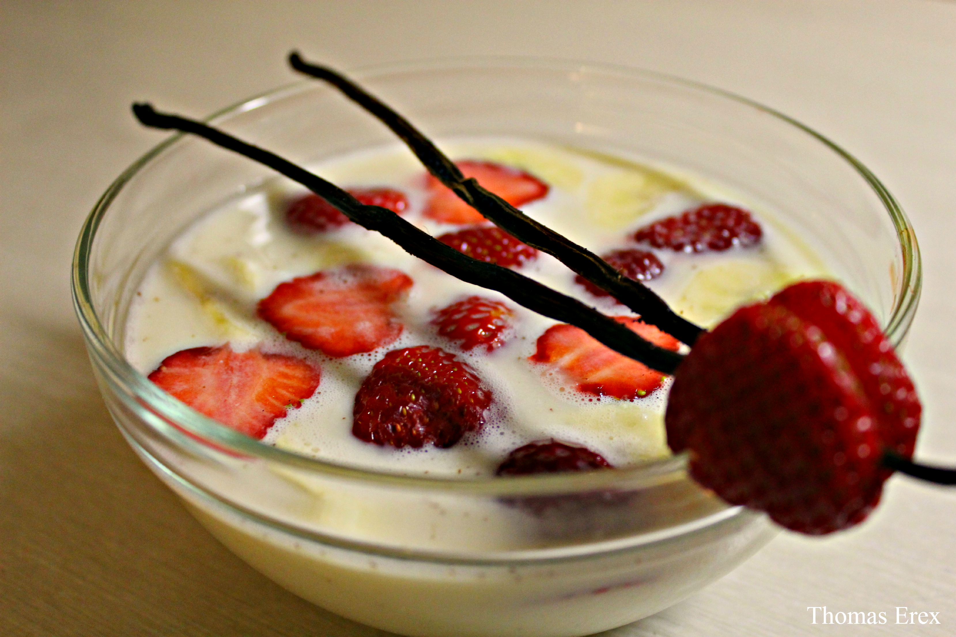 kornene af en stang vanilje (eller 1 spsk flydende vanilje)
