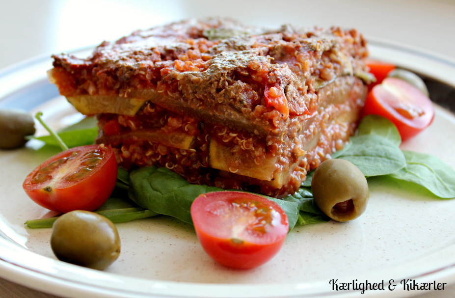 Så er der sund hippie-lasagne! Glutenfri, fedtfattig, farverig og med fred, kærlighed, harmoni og alt det der. Denne lasagne er hverken snasket ind i ost og olie eller fuld af sojakød. Den er hippie-lækker på den sunde måde med en smagfuld pesto, en lækker, enkel tomatsauce med quinoa og “lasagneplader”, der slet ikke er lasagneplader, men som bare er skiver af squash. Det her er en ÆGTE grøntsagslasagne, og den er til dig, der gerne vil lave en lækker og sund lasagne med masser af farve og smag.