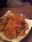 Pizza er også en mulighed, hvis du er ok med en lidt mindre spændende udgave end den, du selv kan trylle frem derhjemme. En vegansk pizza ude i byen er jo oftest en vegetarpizza uden ost, hvilket i sig selv er lidt kedeligt. Du kan gøre det lidt mere snasket og (u)lækkert ved at få chili-/hvidløgsdressing eller ketchup på, men hvis du er så heldig at bo i Aarhus, så kan du også få pizza med vegansk ost. Hos Venus Pizzaria i Vester Allé har de nemlig en vegansk pizza med ost på menuen. Jeg har spist den to gange, og den er ganske udemærket. I går delte jeg en familieudgave med min altspisende ven, som også syntes, den var rigtig lækker. Nu kan du også få vegansk peperoni og skinke på!